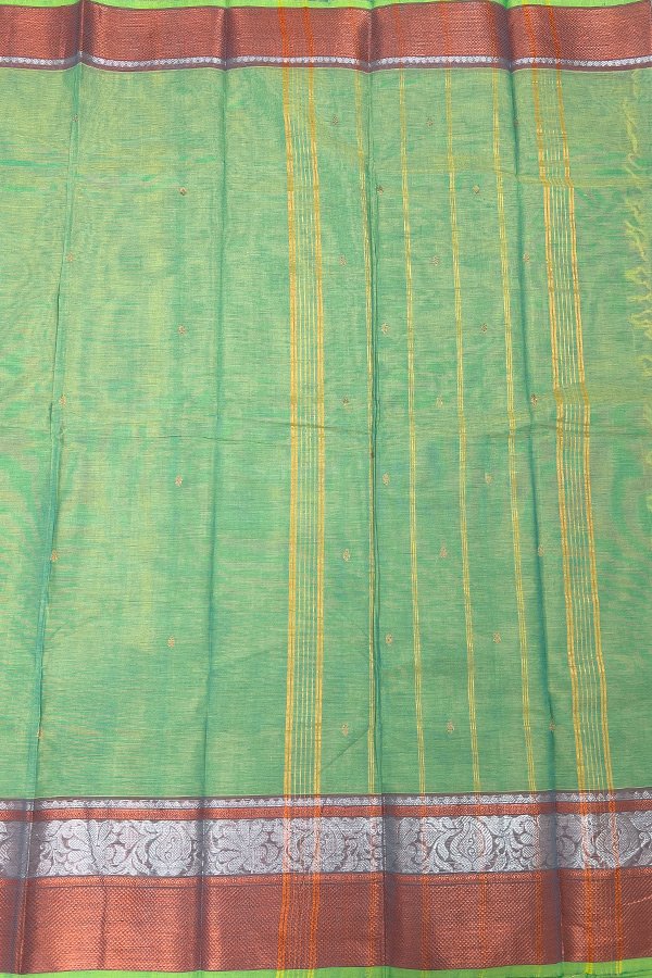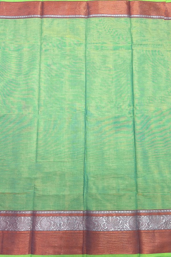 You're viewing: Green Kanchi Cotton Saree with Silver Zari Border Original price was: ₹1,380.Current price is: ₹1,242.