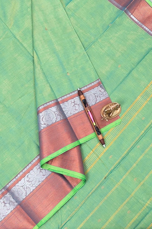 Green Kanchi Cotton Saree with Silver Zari Border