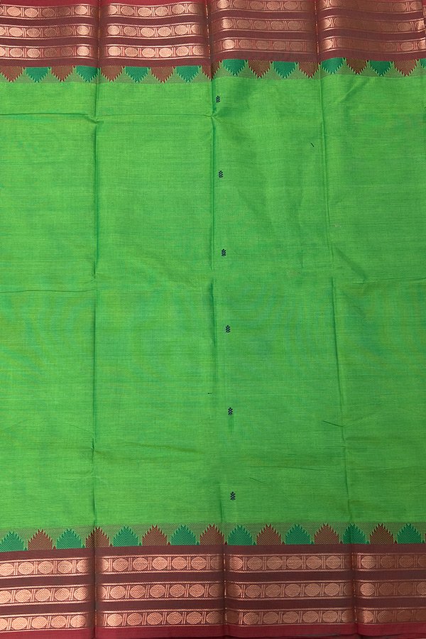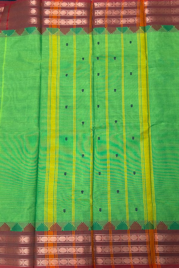 Green Kanchi Cotton Saree with Temple Design Border