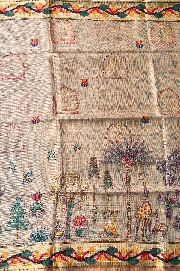 You're viewing: Kota Tussar Saree In Cream With French Knots Original price was: ₹2,111.Current price is: ₹1,900.