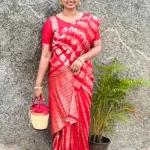 Viscose Semi Silk Partly with Motifs and Brocade Pallu in Red